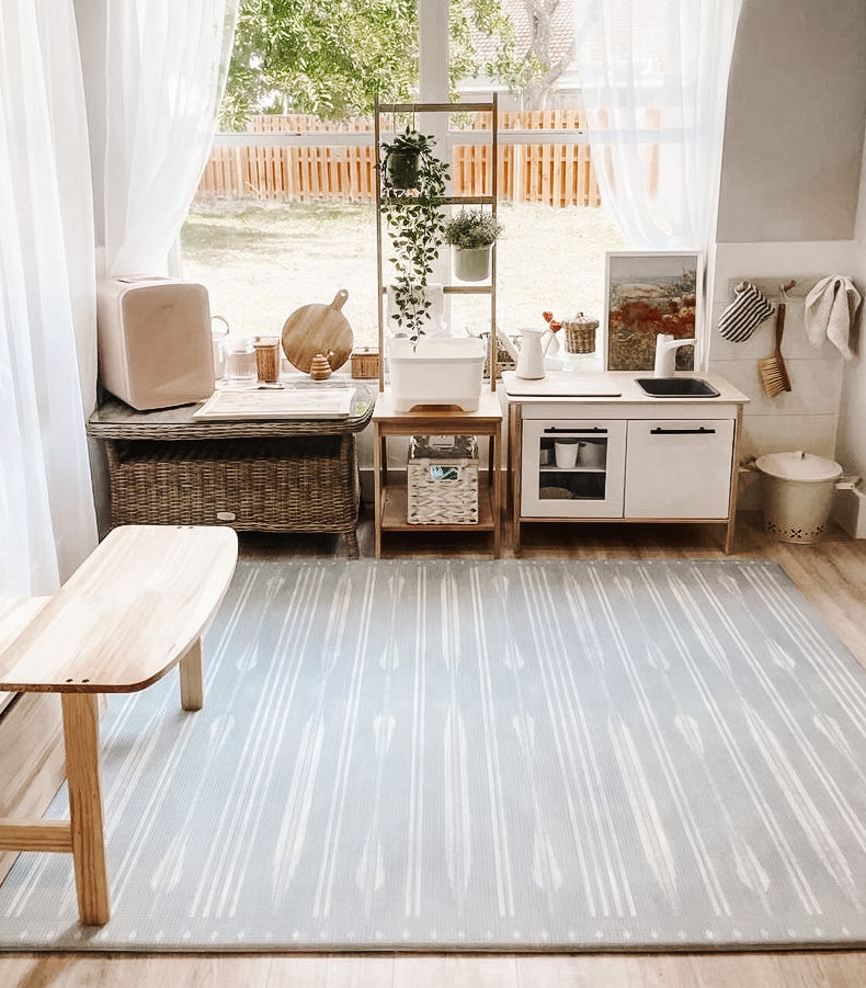 This mat is fantastic! We can't get over how beautiful and functional it is. The material is soft and durable, perfect for our child as well as my morning yoga sessions. Most importantly it is so easy to clean! No more fear of stains on our rug which can happen with a toddler. Love the subtle design which blends perfectly in our home.