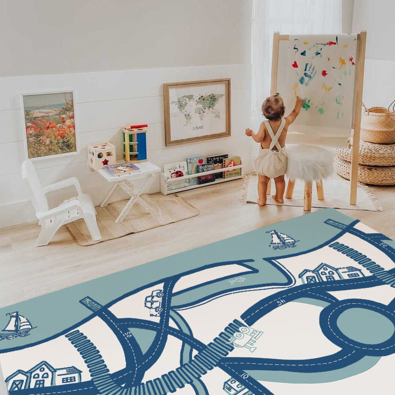 We love this playmat! It looks like a regular rug but it can be wiped clean and rolled up to put away. It’s soft enough for my infant not to hurt herself when she falls over and my big kids love the city scene on the other side. It’s covers a large area so plenty of play space. It came with 3 Velcro straps to hold it rolled up. Highly recommend!